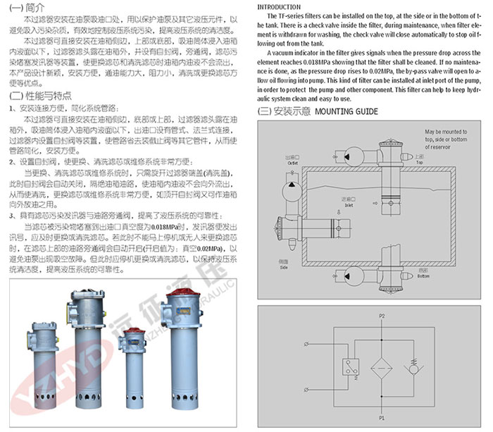 365英国上市官方网站是一家集开发、生产、服务于一体的综合性企业,是国内生产液压辅件(液压配件_液压过滤器)的专 业厂家,长期以来为冶金、石油、矿山、工程、建筑、塑机、化工、机床、交通等行业的液压设备提供配套,同时为引进设备提供高品质的国产化备件。今天远征主讲TF系列箱外自封式吸油过滤器(新型结构代替LXZ系列),详情请看下图:
